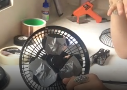 On your fan, you stick copper tape on the back of each blade. On the front of the blades, you stick a magnet using glue – one magnet for each blade if you’re using a small desk fan, more magnets if you’re using a bigger fan.